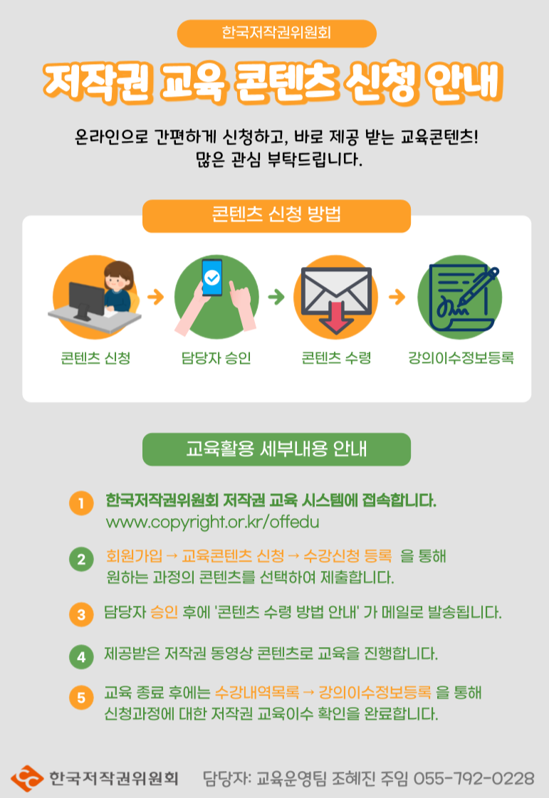 (교육문의) 한국저작권위원회 교육개발팀 조혜진 주임(055-792-0217)