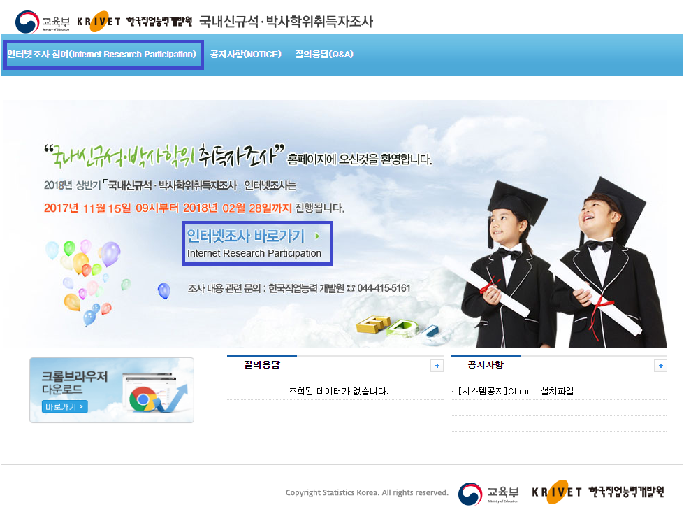 원활한 시스템 사용을 위하여 인터넷조사 메인화면에 크롬설치 배너추가