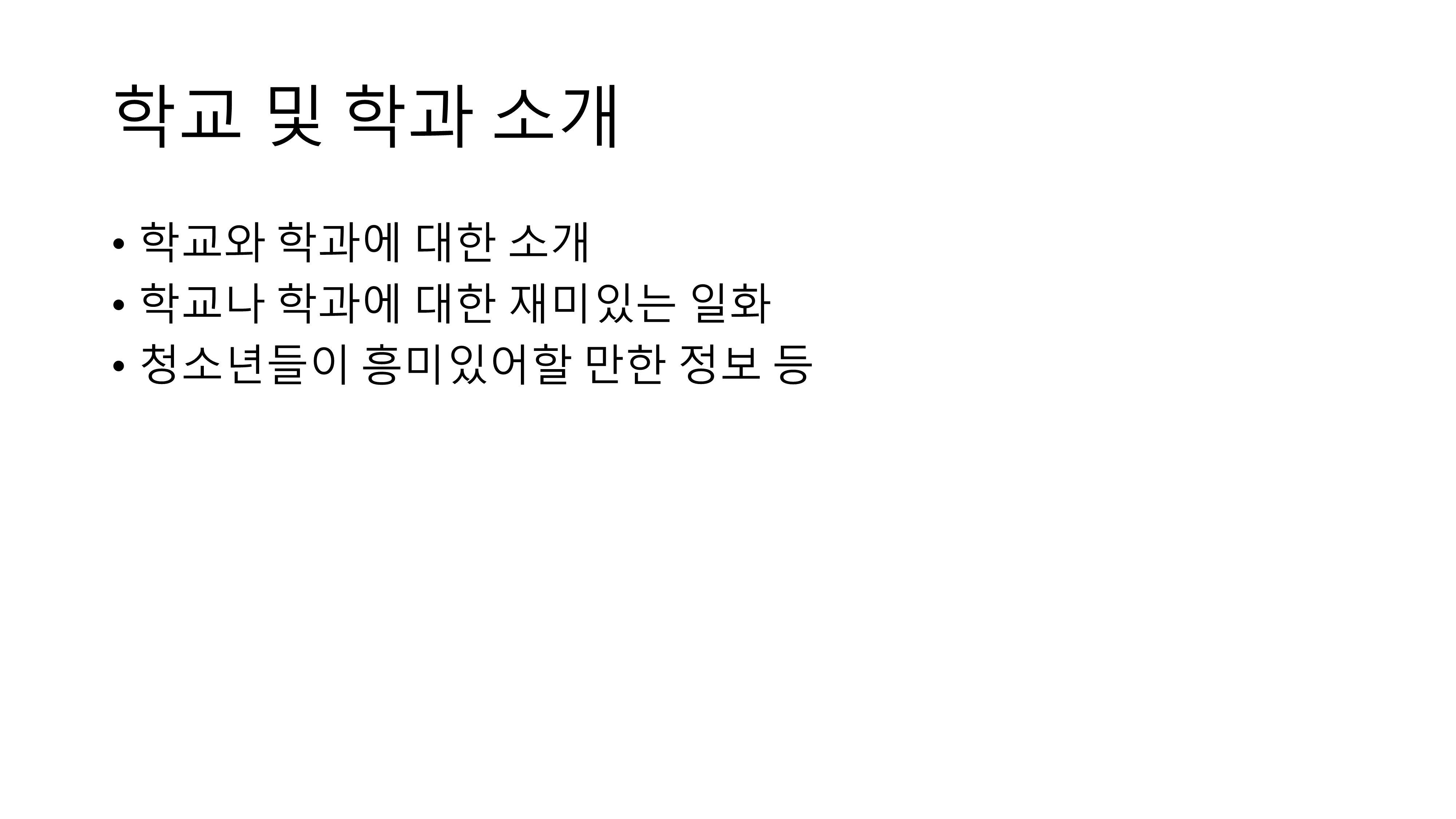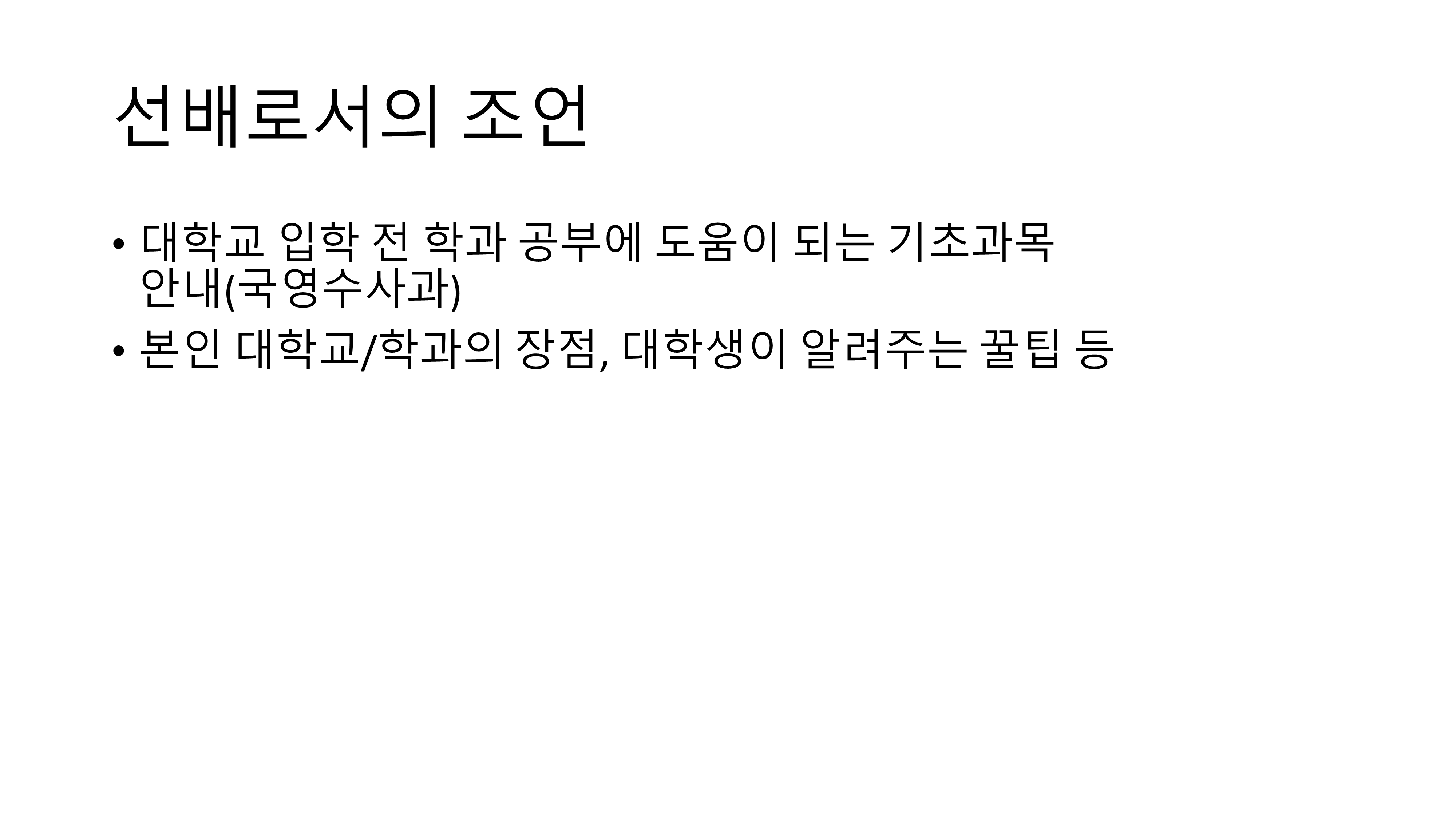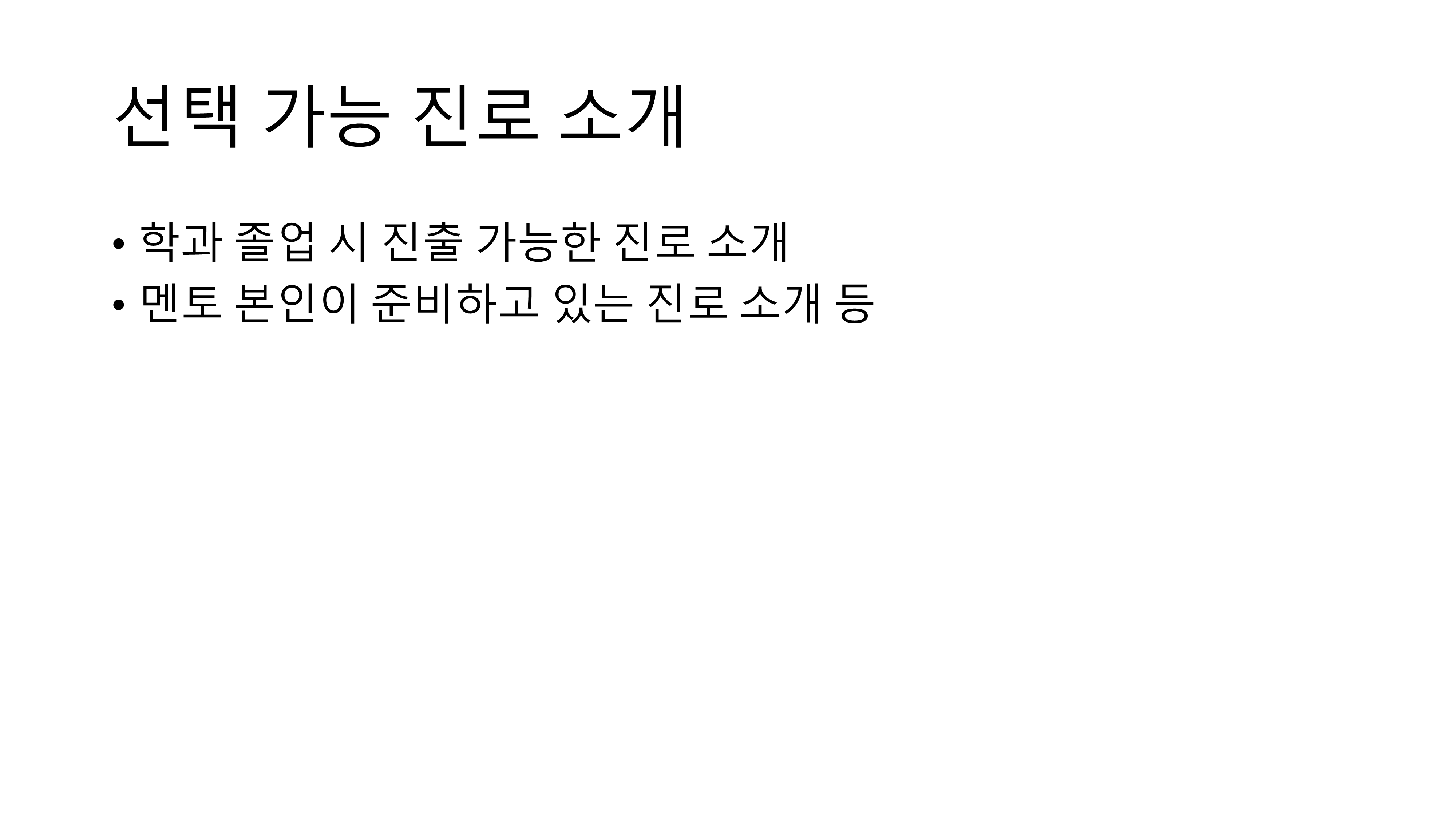 ※ 자기소개 및 학과(전공)소개 등 다양한 시청각 자료(PPT, 유튜브 등)를 활용하여 멘토링 자료 준비