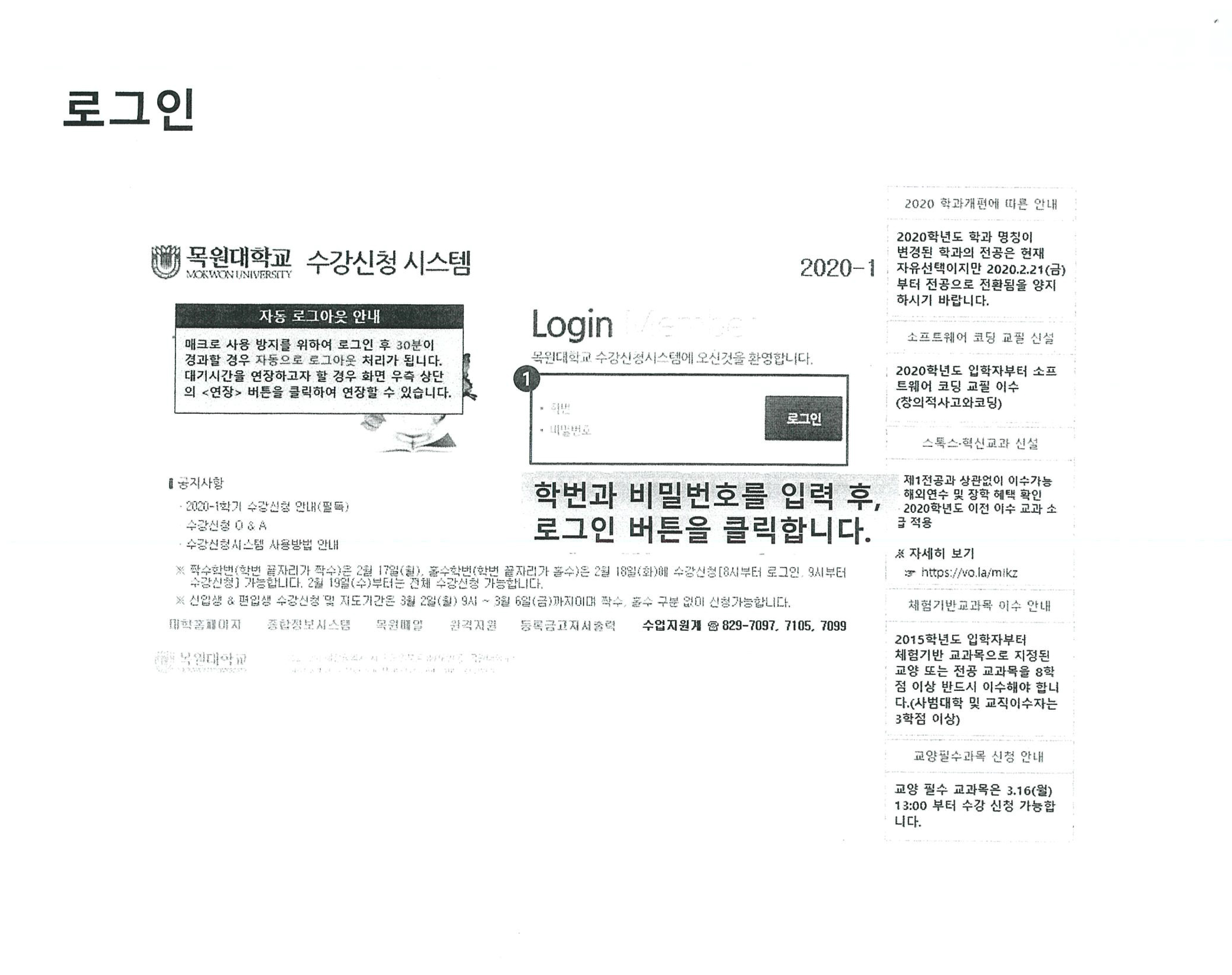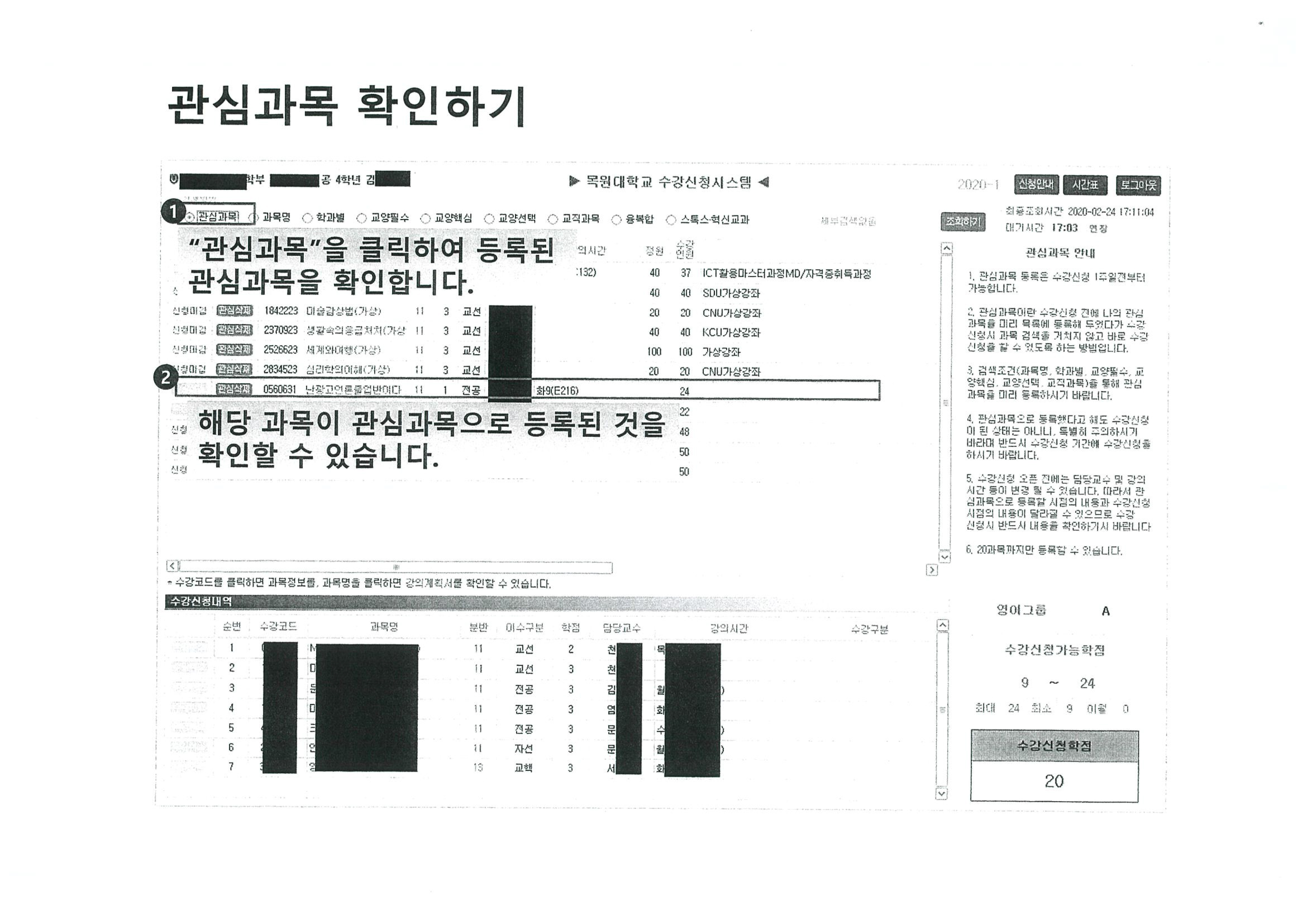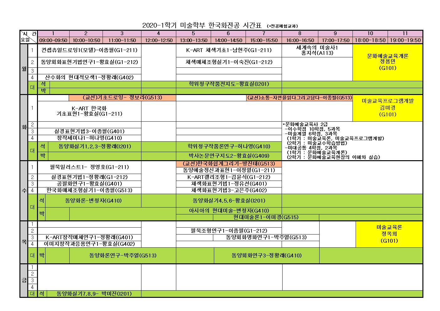 2020-1학기 한국화전공 신입생 수강신청 안내