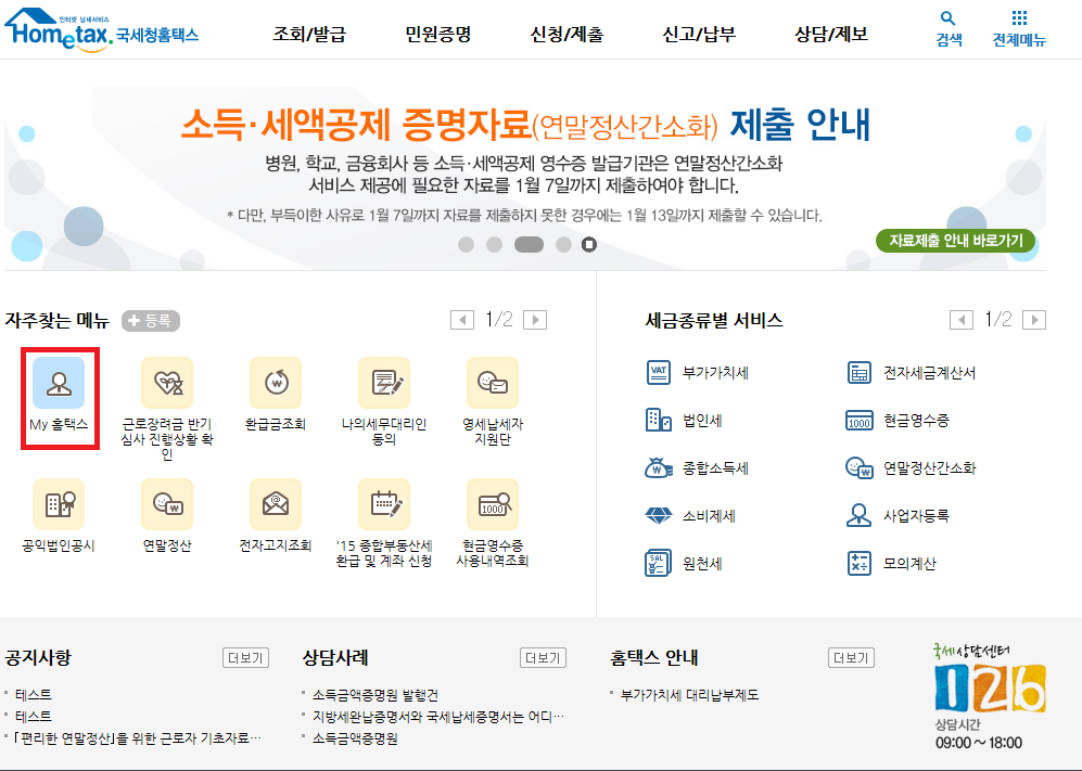 ○국세청 홈택스에서 「My 홈택스」 메뉴를 선택합니다.