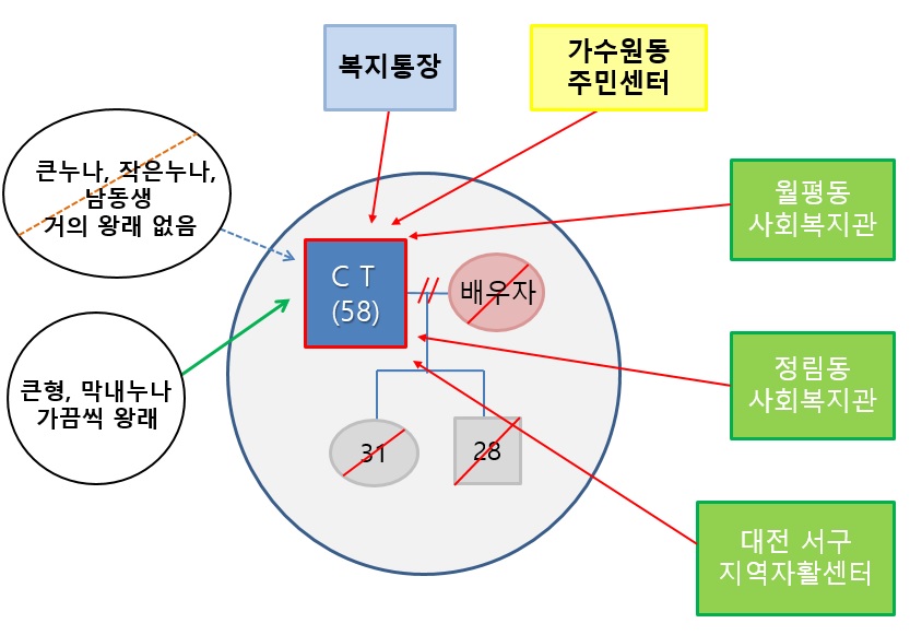 기관내부의뢰( ) 타기관의뢰(복지통장에 의해 가수원동 주민센터에 의뢰)