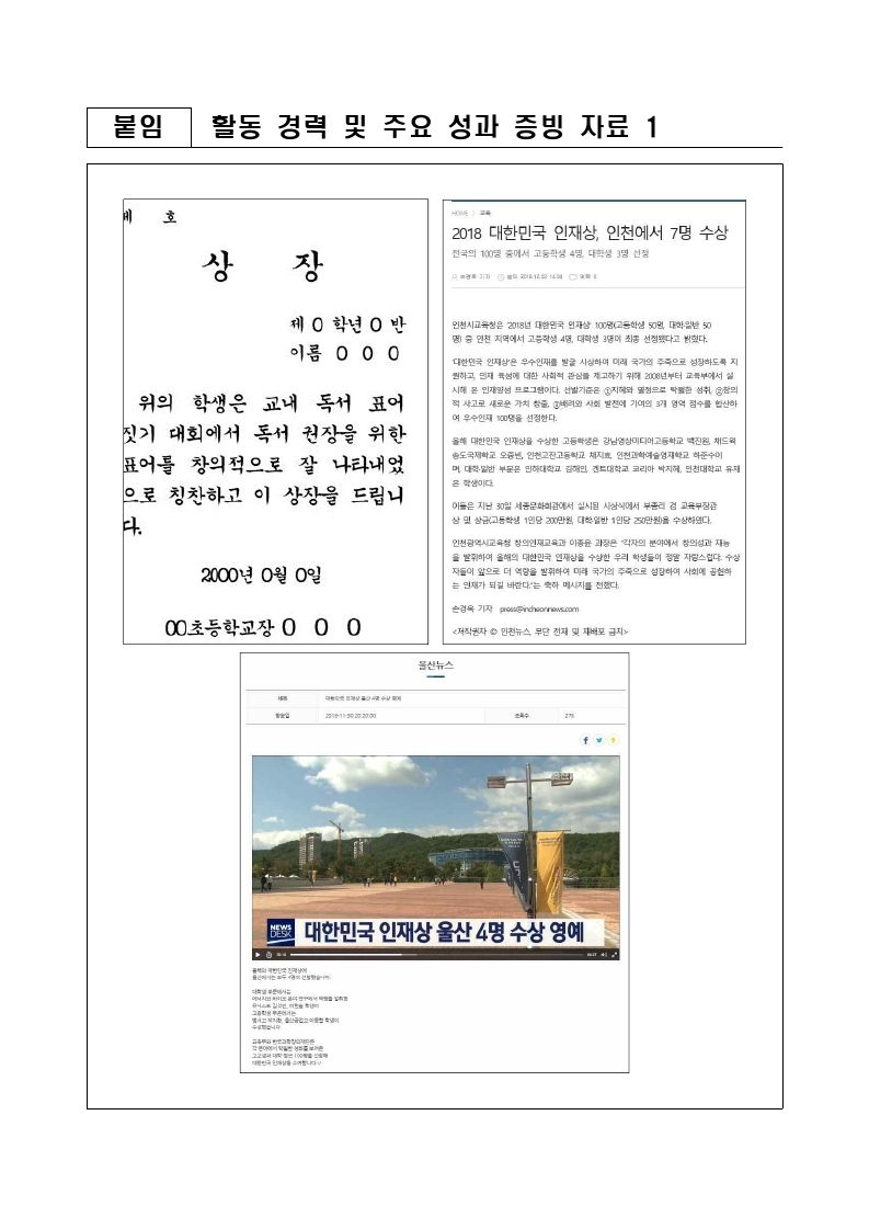 ※ 기준 분량 : 활동경력과 주요성과 최대 3건 증빙자료 총 20장 이내