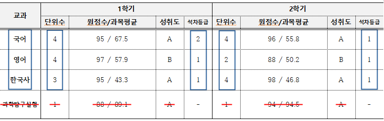 · 학업성적 : 학년별 성적에 따라 차등배점
