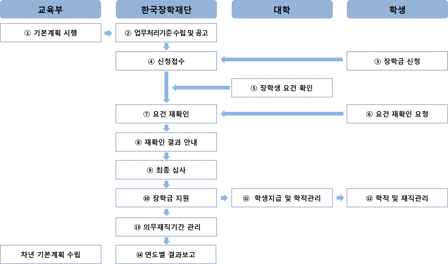 ㅇ (’18. 8. 6.∼17.) 장학생 모집(학생의 장학금 신청→재단)
