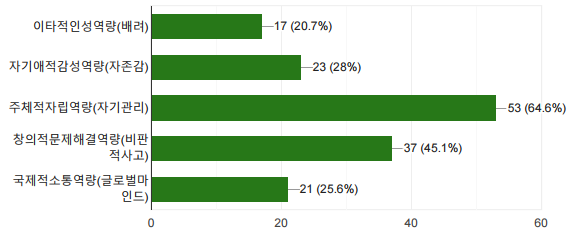 우리 학교의 5대 핵심역량 중 이번 Q+클래스 수강을 통해 향상된 역량은?(복수 응답 가능) |