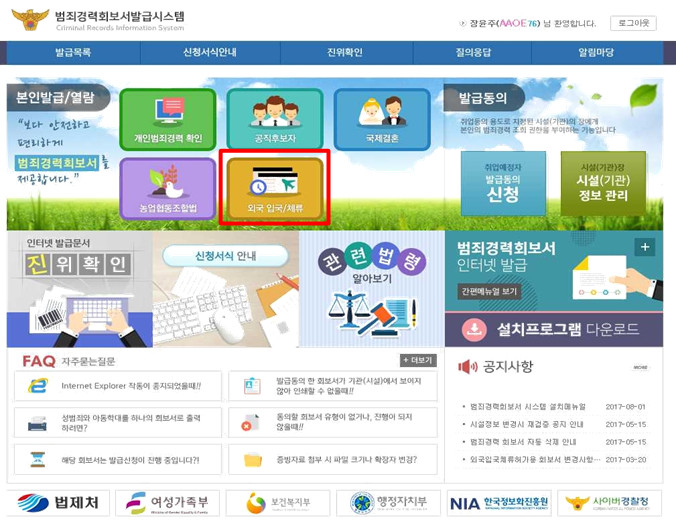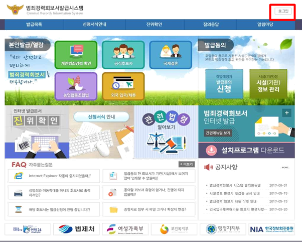 1. 홈페이지 접속(http://crims.police.go.kr) 및 개인 공인인증서 로그인 |