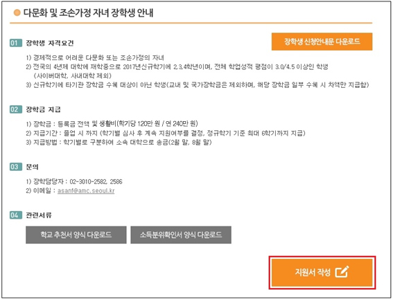 ※ 아산재단 지원신청서비스 : welfare.asanfoundation.or.kr