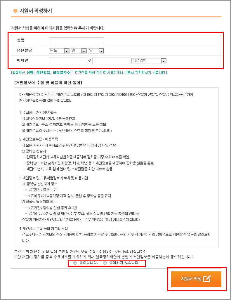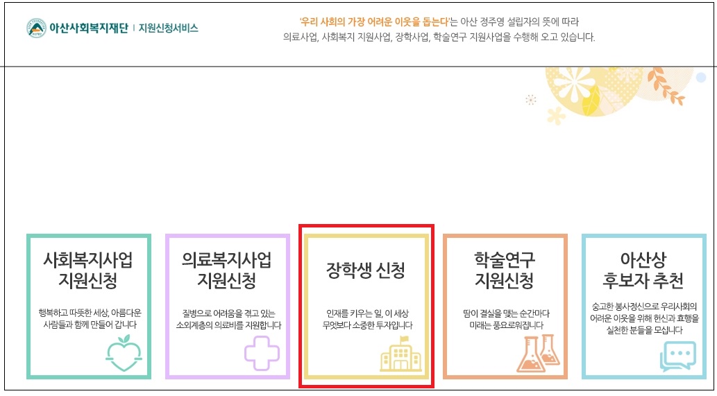 (포털사이트에서 ‘아산재단 지원신청서비스’ 검색)