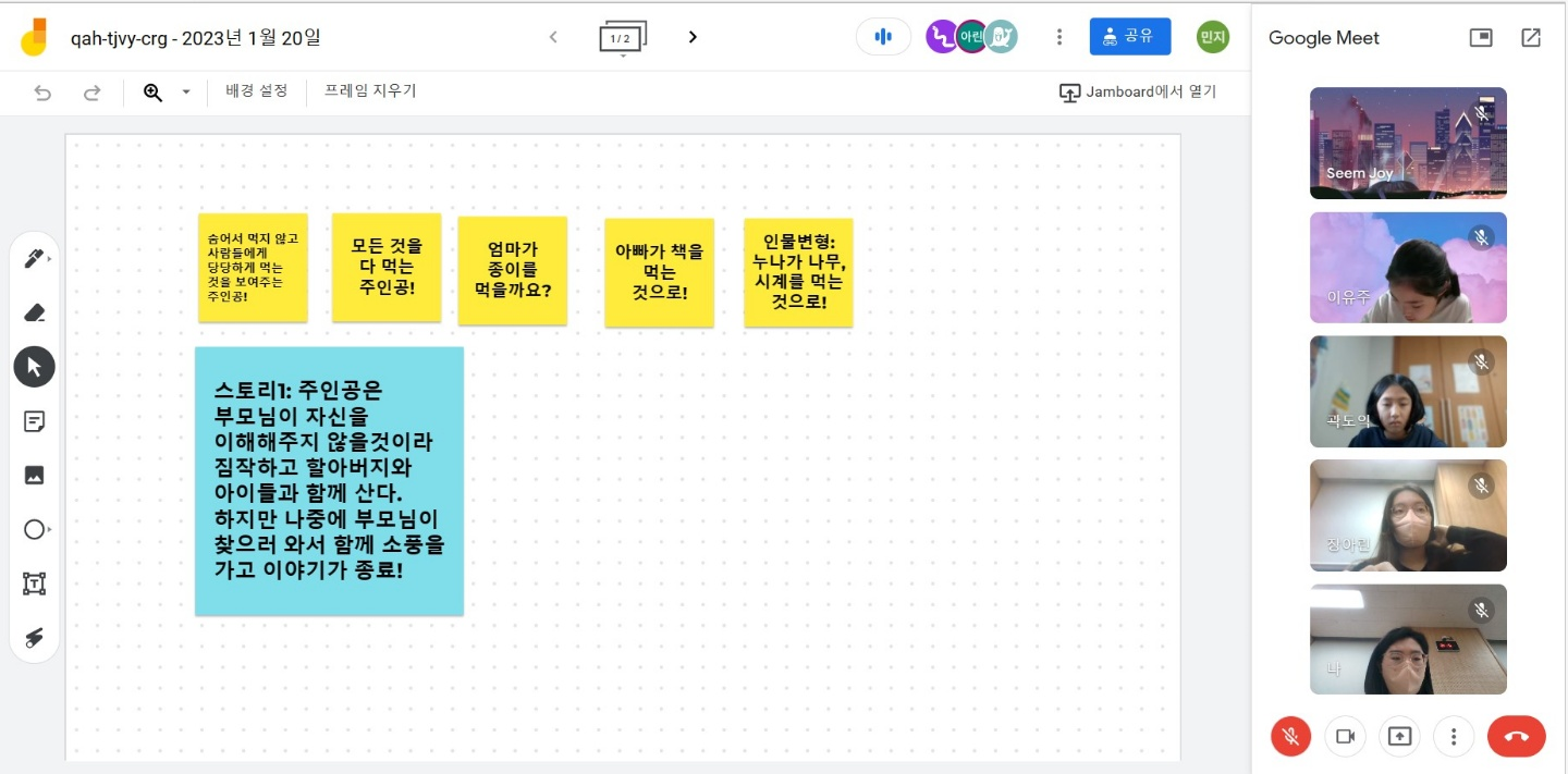 4일 간의 독서캠프 활동을 바탕으로 직접 이야기를 만들어보는 동화 제작 프로그램을 진행하였습니다. 활동 교재였던 단편소설집에서 가장 인상깊었거나 재미있었던 이야기를 하나 골라 상상력을 발휘하여 각색하도록 유도하였습니다. |