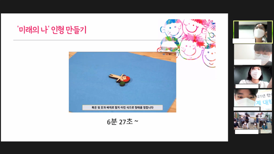자신의 미래를 예측해보고 예측한 자신의 미래, 자기가 되고 싶은 자신의 모습을 생각하며 인형을 만들어보는 시간입니다. 어린 청소년기의 학생들이 자신의 미래를 계획하고 관심 분야를 찾아가는 데 있어 도움이 되었습니다. |