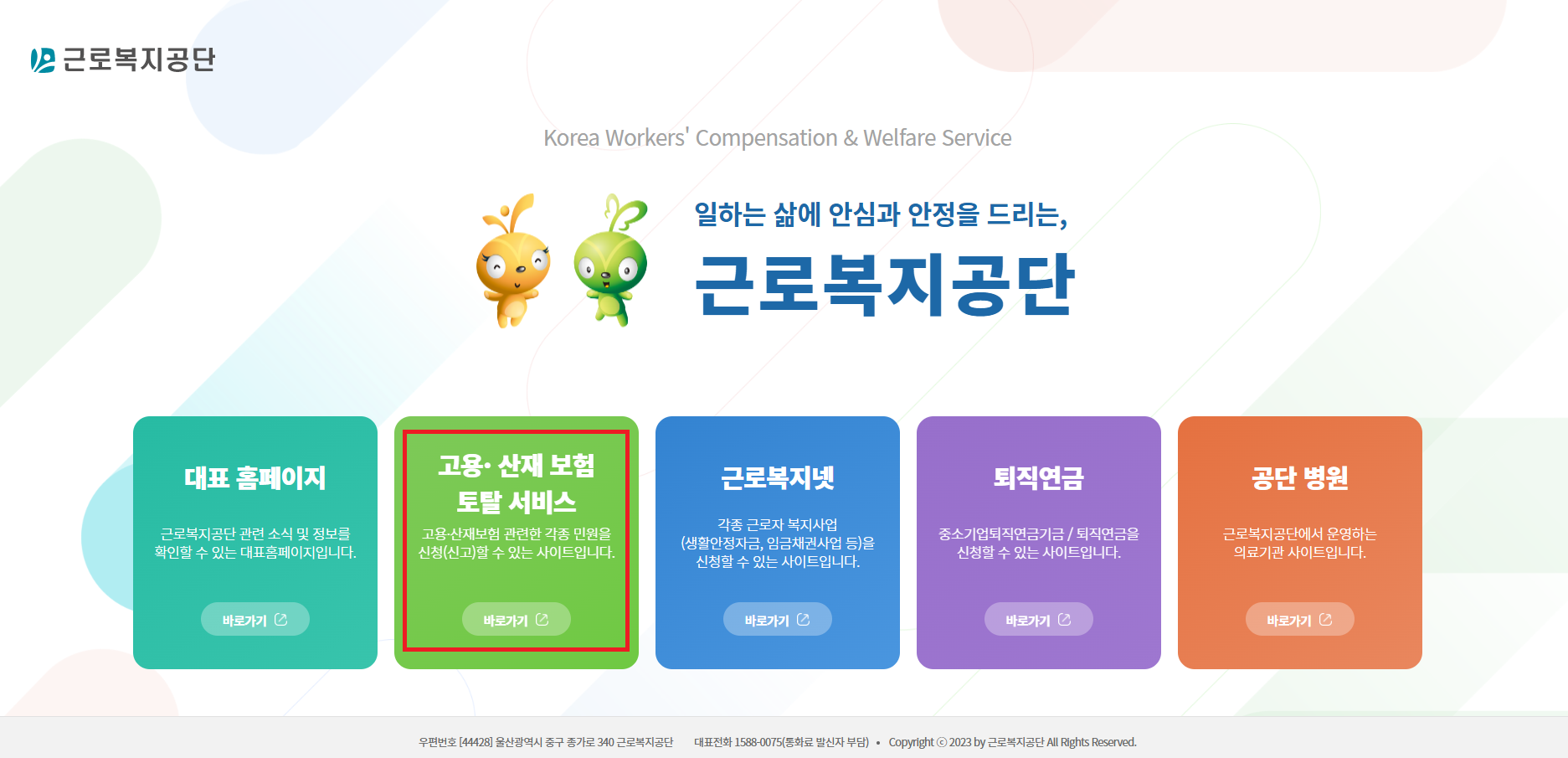 ➊ 근로복지공단 ‘고용·산재 보험 토탈 서비스’ 접속 (https://total.comwel.or.kr)