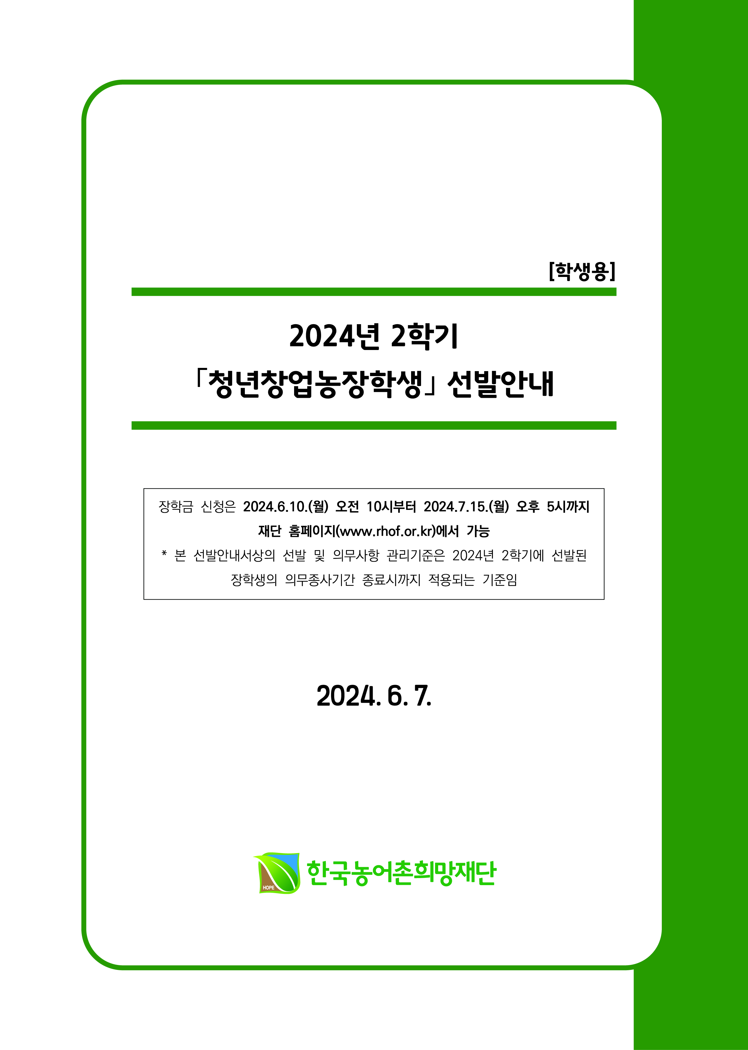 2024년 2학기 농림축산식품부(청년창업농장학금) 장학생 선발 안내(학생용).hwp