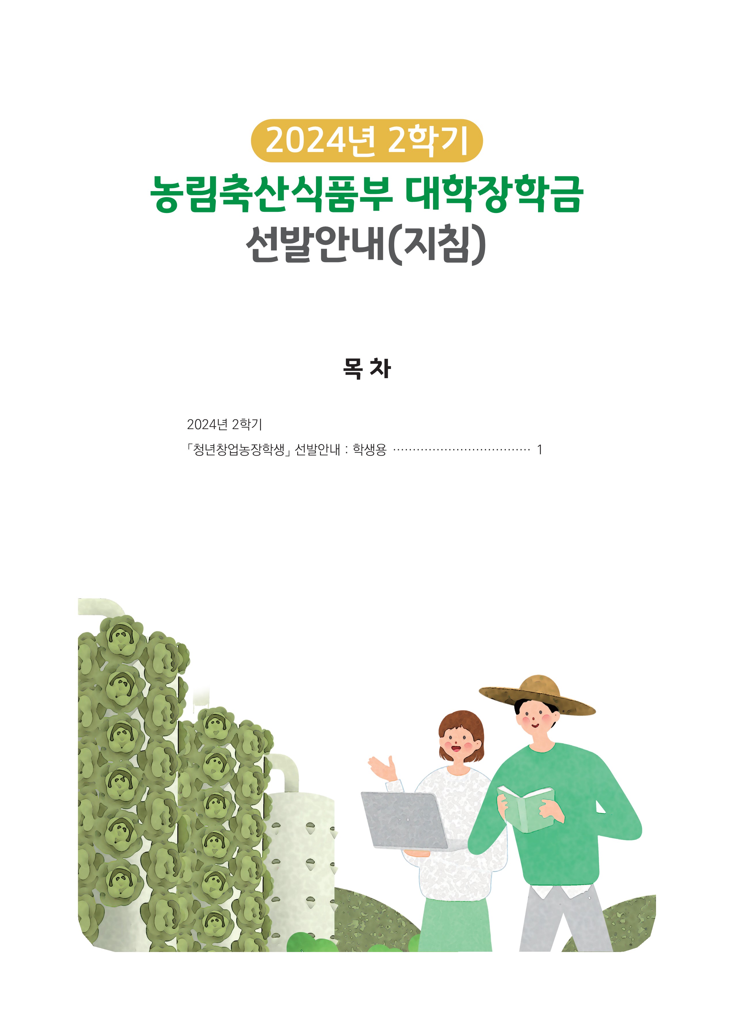 2024년 2학기 농림축산식품부 대학장학금 시행계획 및 선발안내 _ [청년창업농장학금]