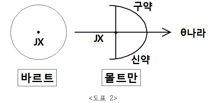 바르트에 따르면, 구약과 신약의 관계는 시작과 완성의 관계이다. 말하자면, 이스라엘의 하나님이 자기 백성과 체결하신 계약을 이 이스라엘의 목적인 예수 그리스도의 역사를 통하여 완성하셨다. 더욱이 바르트에 따르면, 성서는 예수 그리스도라는 하나의 중심을 가진 원으로서 신학적 인식은 예수 그리스도라는 구심점을 향한 인식이다. “이 중심(예수 그리스도)은 신학자에게 성경 중 그 어떤 것도 중심이 되는 것을 허락지 않으며 자신과 경쟁하는 제2의 중심을 만들도록 허락지 않는다. 중심이 하나인 원이 중심이 둘인 타원형이 될 때 소종파주의, 이단, 혹은 배도에 떨어질 것이다. 진정한 신학적 인식의 첫 번째 표준이란 이 중심이신 예수 그리스도와 더불어 모으는 인식에 있다.” 그러나 이와 같은 예수 그리스도 중심의 성서 이해는 성서를 닫힌 책으로 만들고 하나님의 약속의 미래적인 완성인 하나님의 나라를 간과하는 것이 아닌가? 성서는 닫혀있는 원이 아니고 하나님의 미래를 향해 열려있는 활의 비유가 더 적당한 비유가 아닌가? “성서의 역사적 증언을 해석하는 열쇠는 ‘성서의 미래’이다. 성서의 문서들은 하나의 심장을 지닌 닫혀 있는 유기체 혹은 하나의 중심을 지닌 닫혀 있는 원이 아니다. 오히려 성서의 모든 문서들은 하나님의 약속의 미래적 성취를 향해 열려 있다. 성서의 중심은 그리스도의 미래이다.”