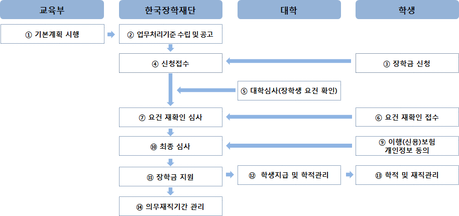 계속 장학생신청절차를 생략하고 한국장학재단과 대학에서 요건충족 여부 확인