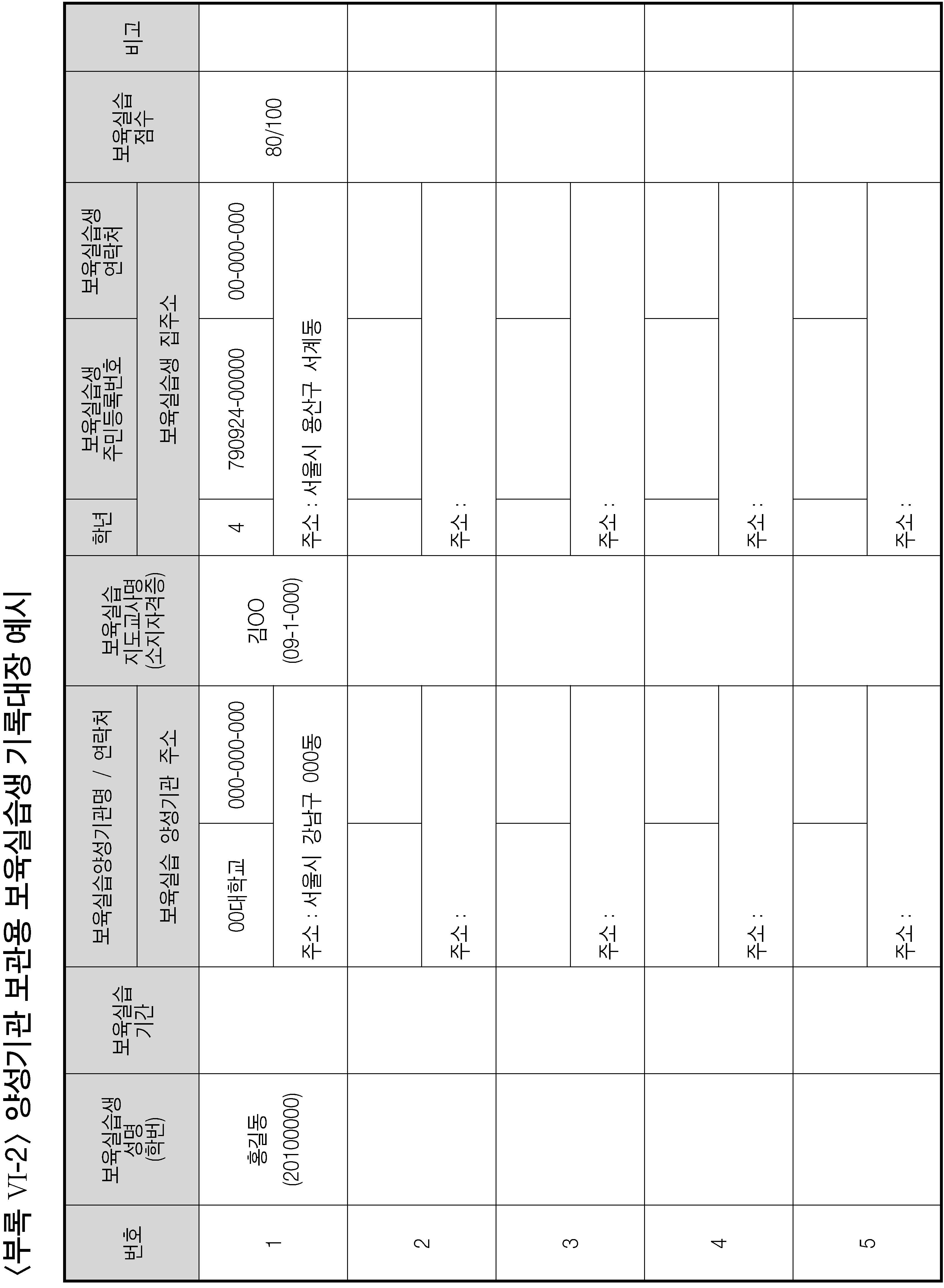 <부록 Ⅲ-1> 보육실습 신청서 예시