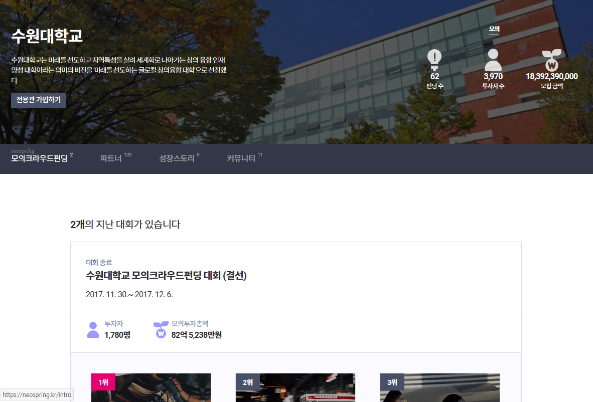 - 목원대학교 모의크라우드펀딩 플랫폼 개설