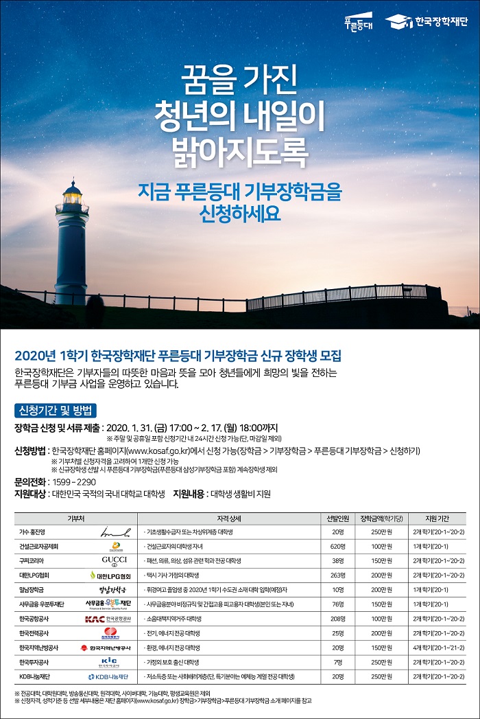 ’20년 1학기 한국장학재단 푸른등대 기부장학생 선발 개요 |