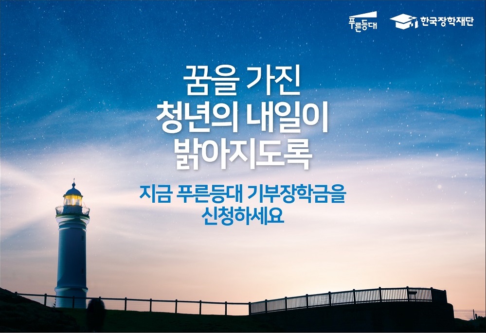 <사진설명: 푸른등대 기부장학금 신청 안내 이미지> |