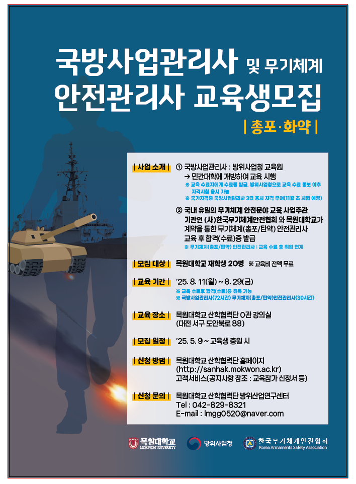 HWP문서(20250430) 국방사업관리사 및 무기체계안전관리사 교육생 모집 안내문.hwp