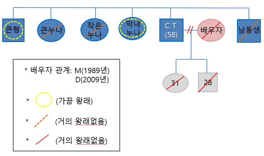 위 사례자는 1년전 까지 택시운전을 하며 경제활동을 하였지만, 통풍과 공황장애등 건강상의 이유로 현재 직업이 없는 상태이다. 이로 인해 현재는 조부의 독립유공자수당, 기초생계급여, 기초의료급여 2종, 기초주거급여로 생계를 이어가고 있다.