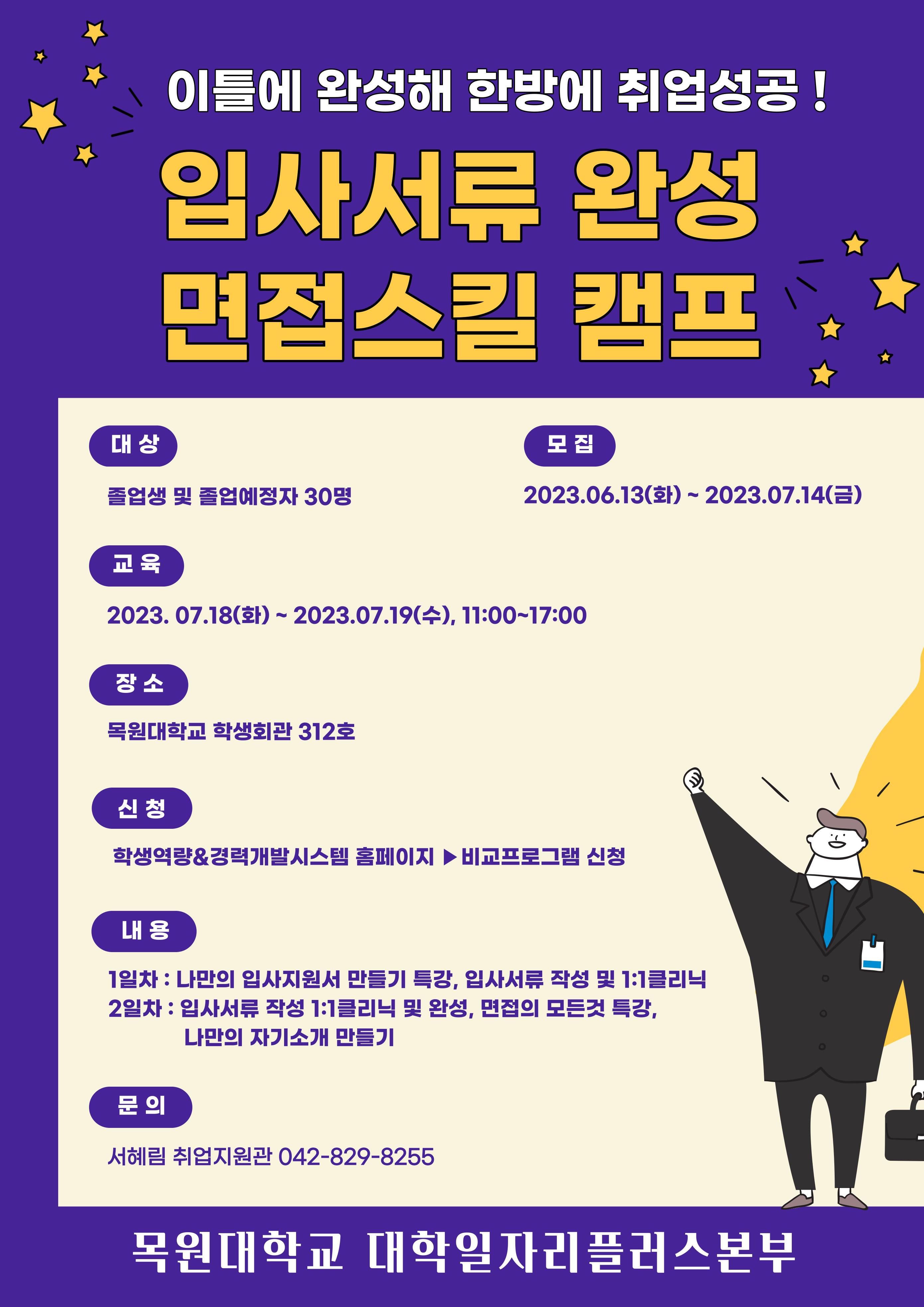 2023학년도 여름방학 대학일자리플러스본부 진로·취업 프로그램 안내 |