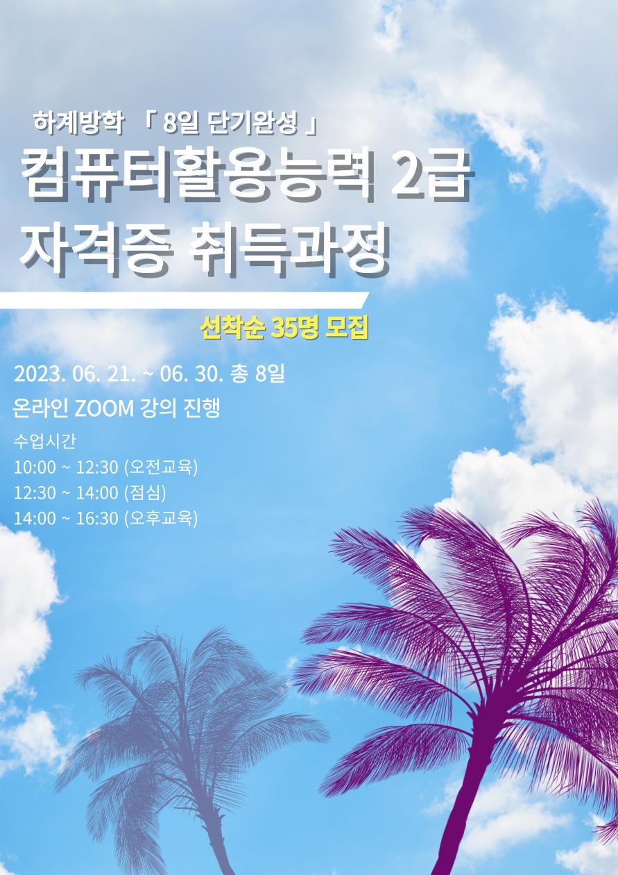 2023년 하계방학 컴퓨터활용능력 2급 자격증 취득과정 |