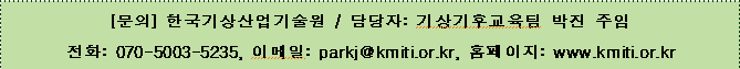 - 한국기상산업기술원 강의장(서울시 서대문구 통일로 135 충정빌딩) 및 기상청 강의장(서울시 동작구 여의대방로 16길 61)