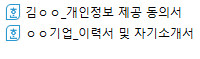 - 해당 입사지원자의 구비서류(개인정보제공동의서, 입사지원서 및 자기소개서, 학생별 자격증명 자료)를 첨부