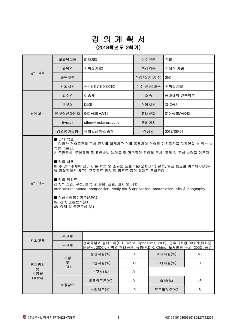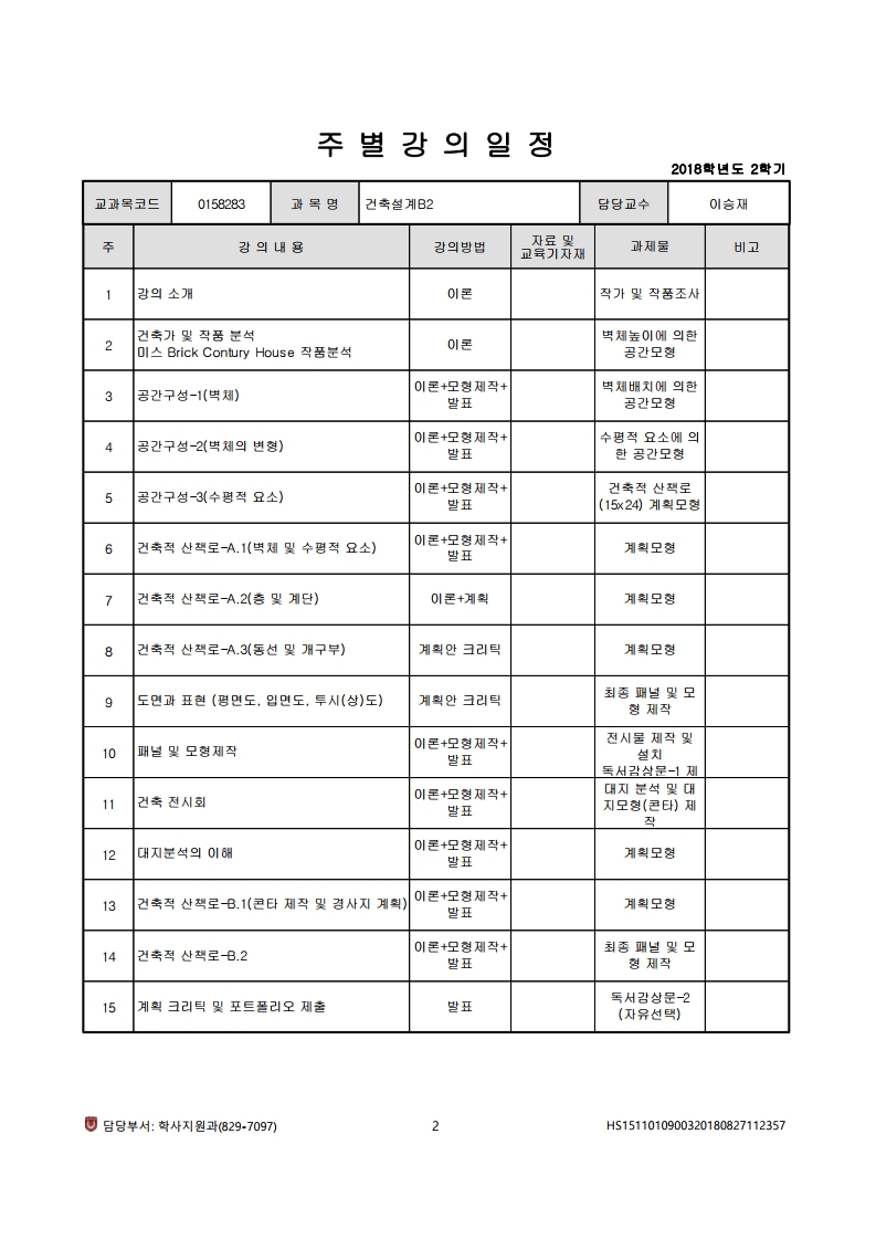 !주차별 강의계획-2018 건축설계B2.hwp