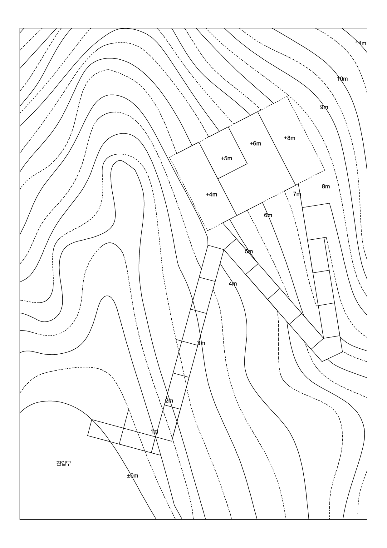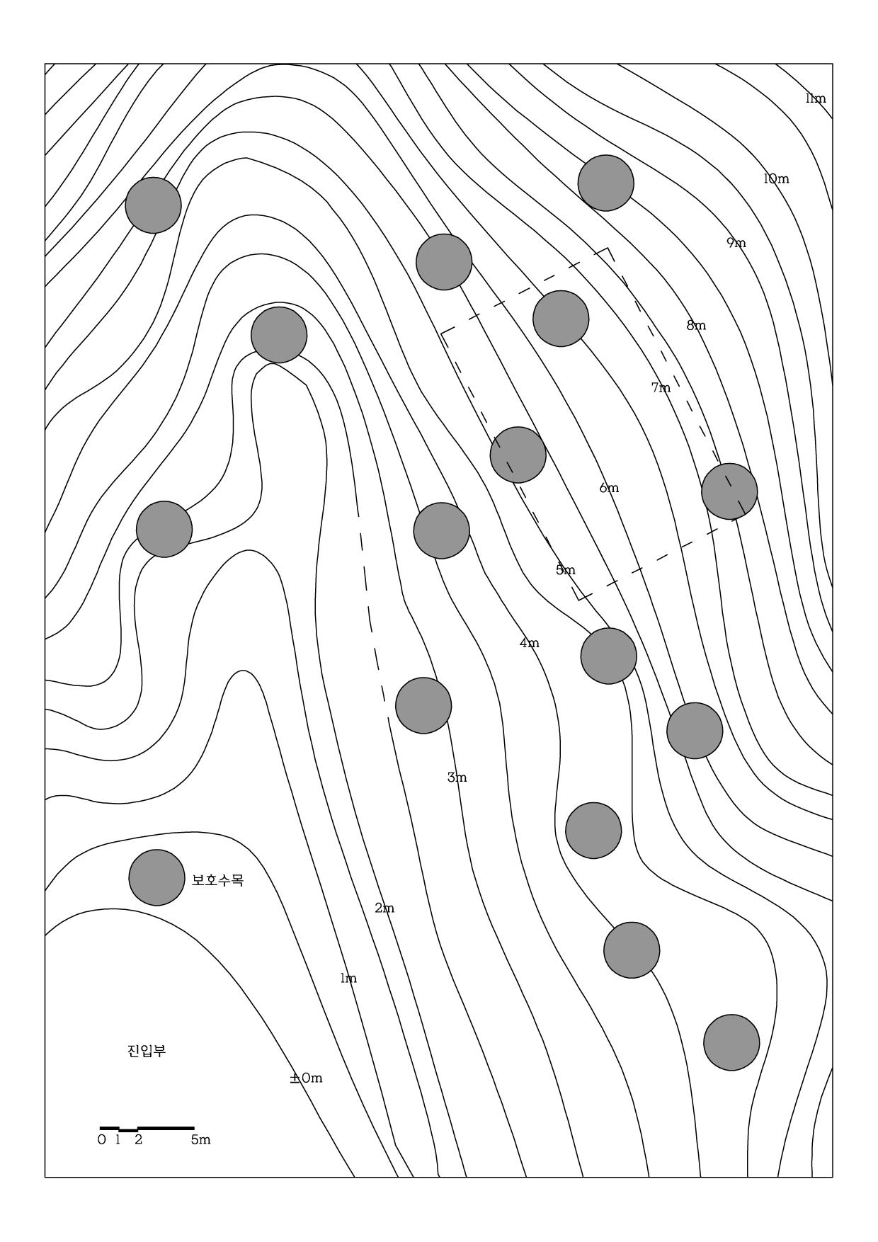 등고 2m 이상인 부분에 자유롭게 배치