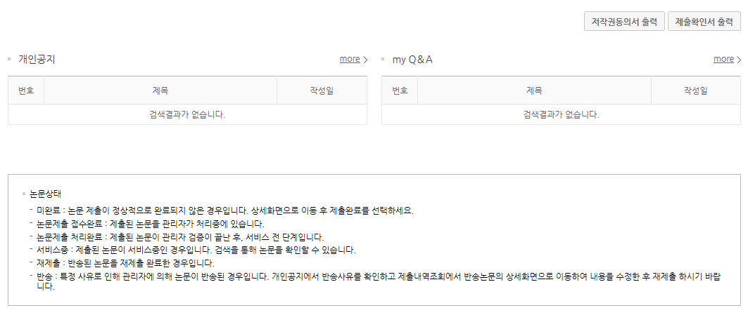 ** 논문업로드 후 승인완료메시지 받기까지 1일 이내의 시간 소요 예상