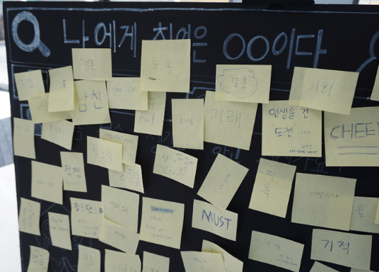 캘리그라피 청년 공동체와 함께하며, 참여자들이 직접 실패에 관한 명언을 활용해 글과 그림을 꾸밀 수 있는 부스 마련