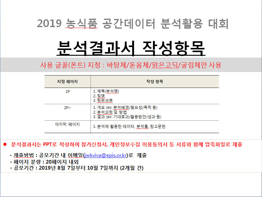 2019년 농식품 공간데이터 분석‧활용 대회 공고문 |