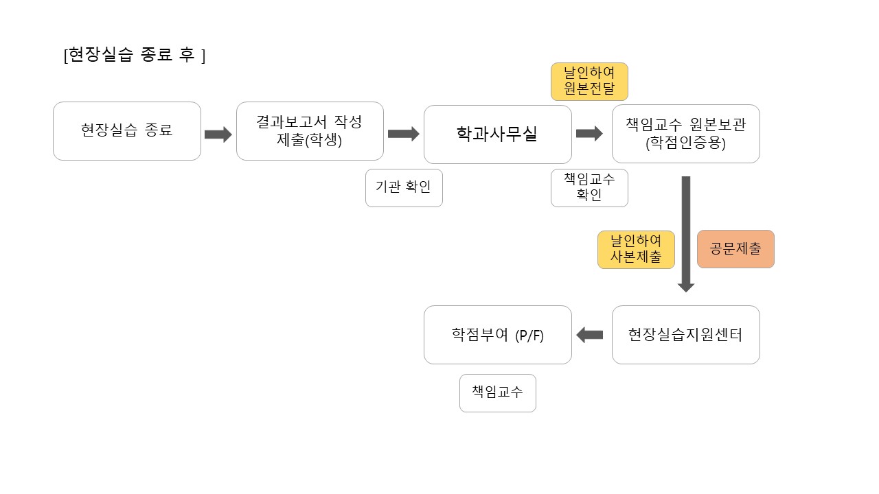 ‣ 실습종료 후 책임교수 날인하여 결과보고서 학과로 제출