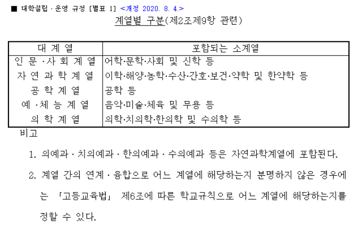 8. 이공계: 대학설립운영규정(별표1. 계열별구분)과 상이한 경우 별도 메모 입력 필요('학교자체규정에 의함' 등), 우대적용은 제1전공이 이공계인 경우만 해당
