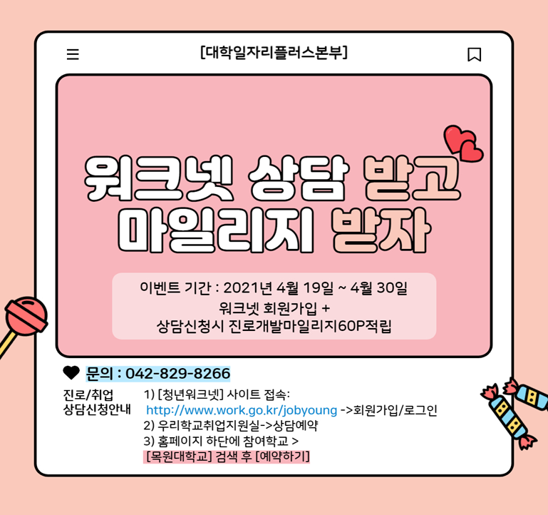 □ 대학일자리플러스본부 워크넷 회원가입 및 상담신청 이벤트