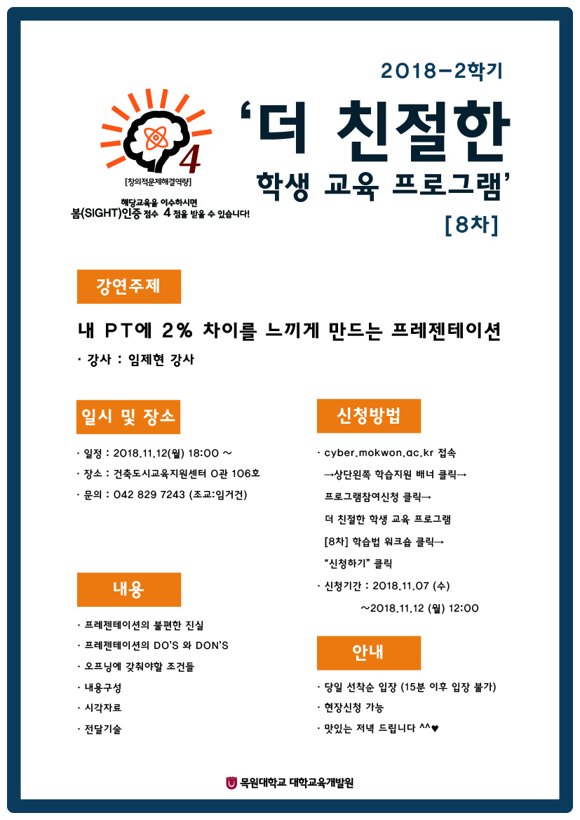 가. 주 제 : [창의적문제해결역량] 내 PT에 2%의 차이를 느끼게 만드는 프레젠테이션