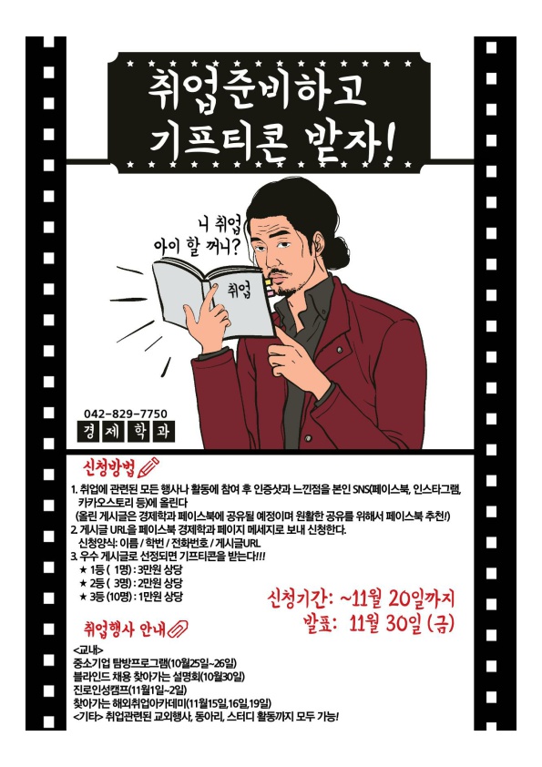 4차산업혁명 시대를 선도하는 금융 및 경제 전문가 양성경제학과 학생들의 취업활동을 응원하기 위해 준비한 이벤트입니다.