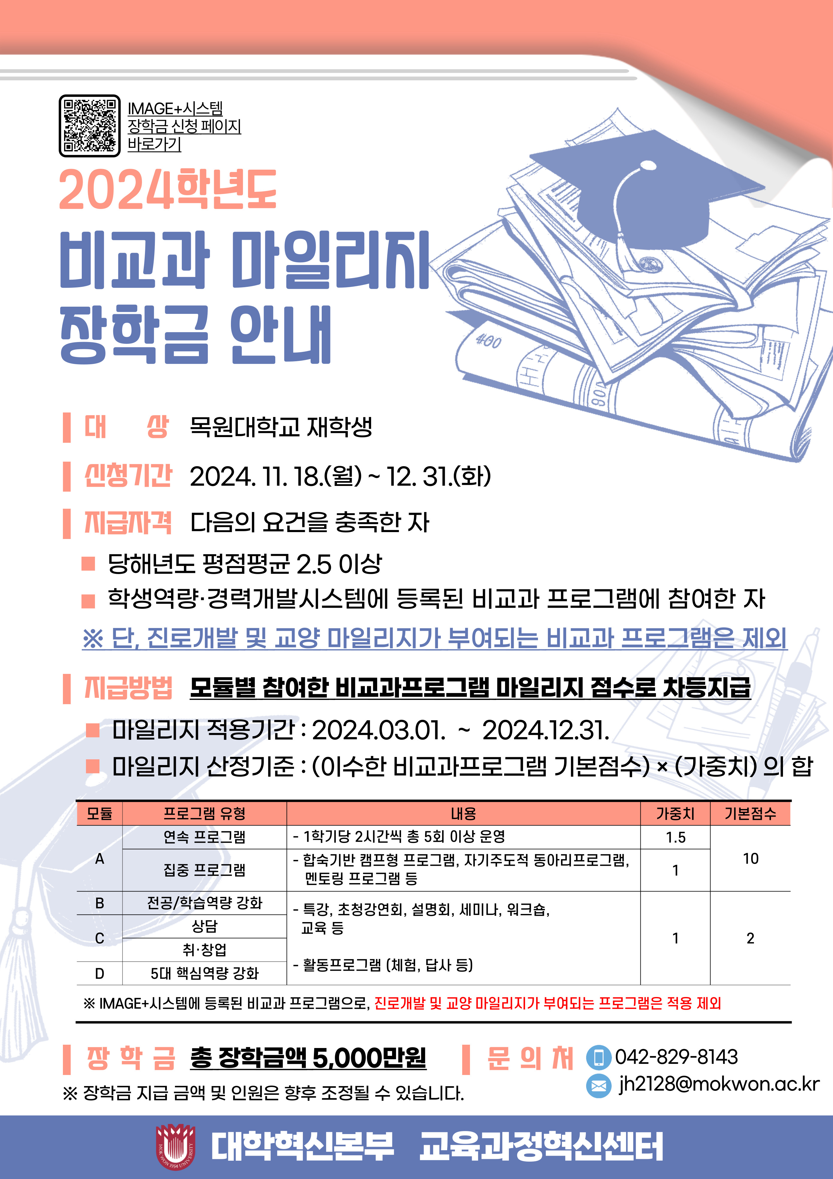 붙임 1. 2024학년도 비교과 마일리지 장학금 포스터 1부.