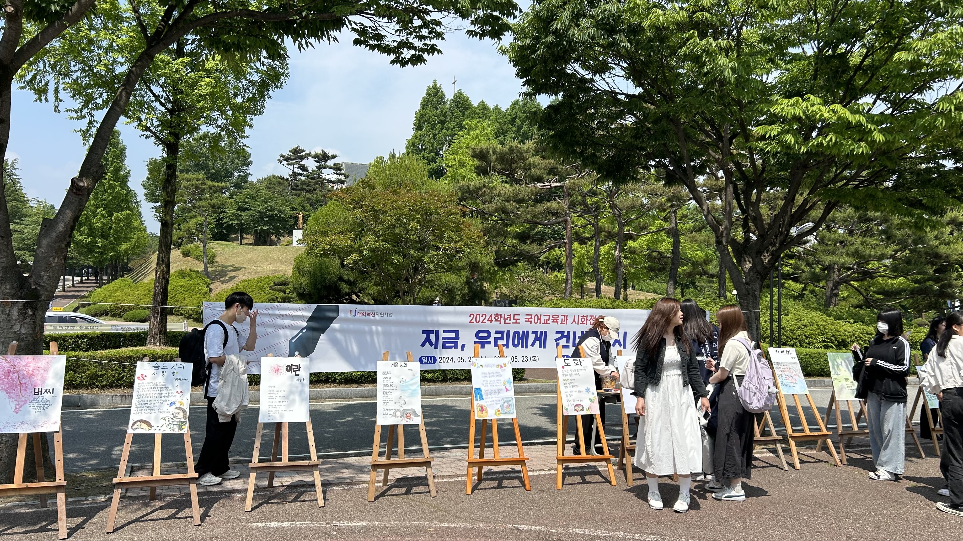 2024.05.22.(수)~2024.05.23.(목) 사범대학 앞 일대에서 2024학년도 국어교육과 시화전 "지금, 우리에게 건네는 시"를 진행하였습니다.