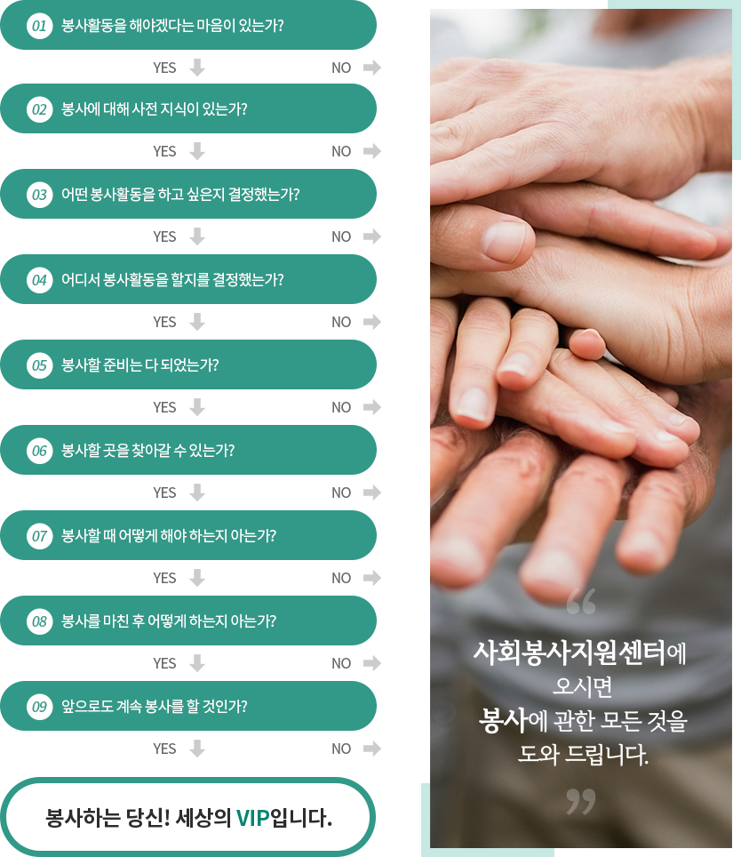 - 봉사활동터전 정보 제공 및 교육훈련, 봉사 참여자에 대한 지원 업무