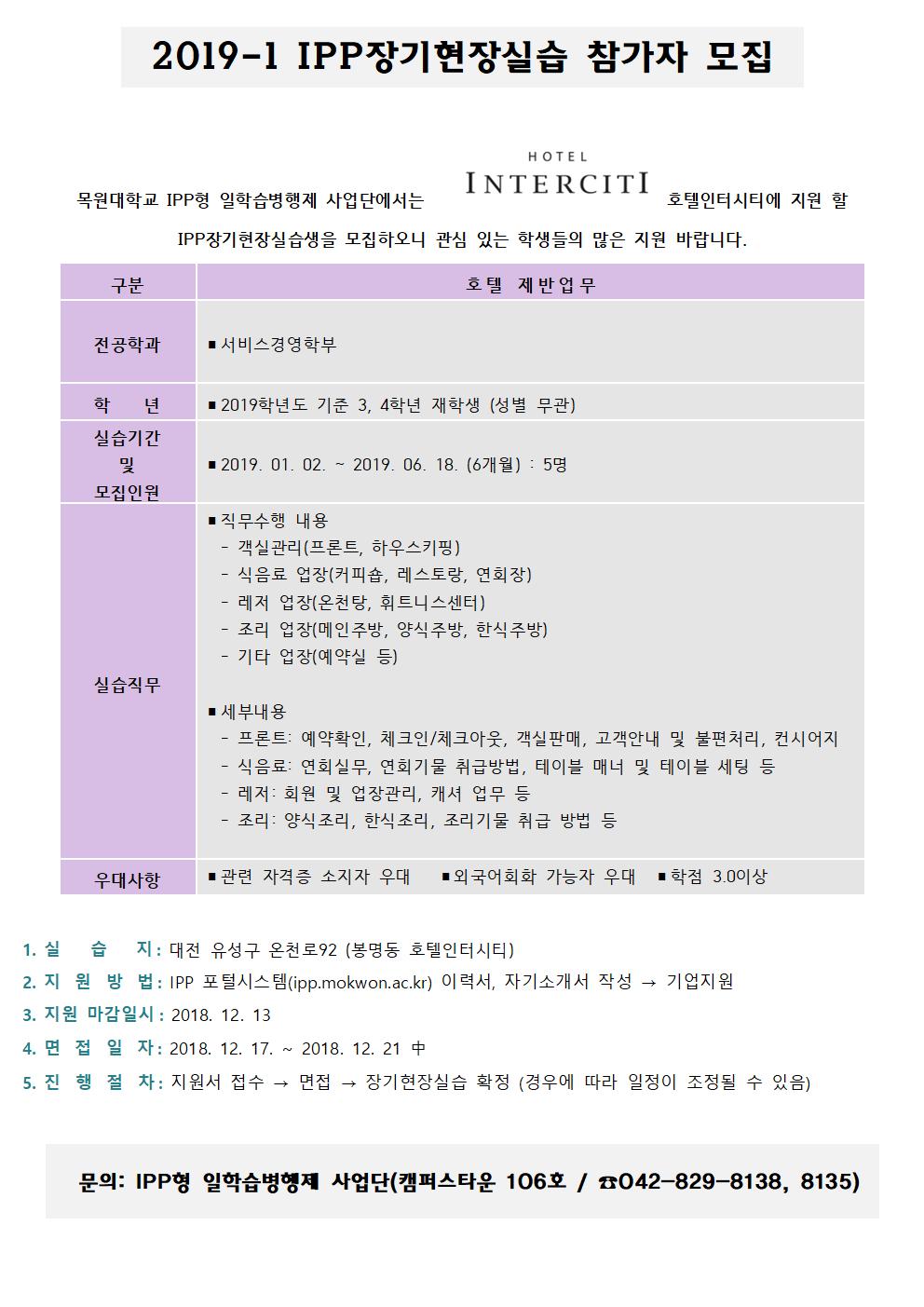 IPP장기현장실습(호텔인터시티) 참여 학생 모집