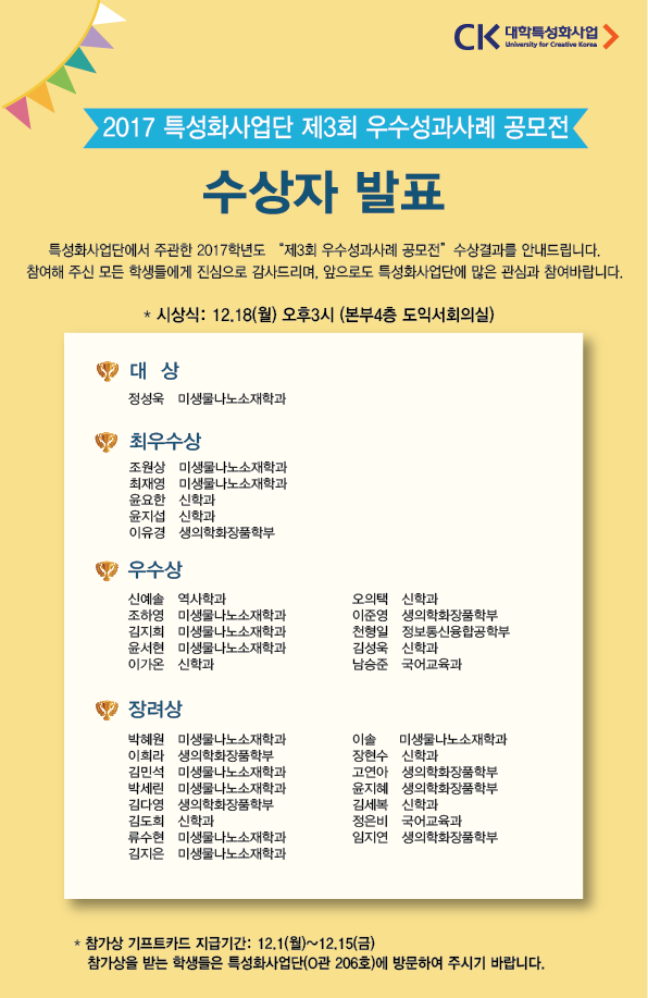 2017 특성화사업단 제3회 우수성과사례 공모전 수상결과 발표