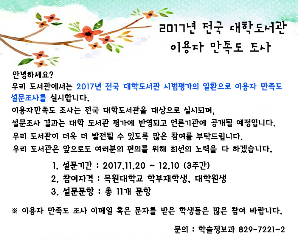 * 우리대학 도서관의 발전을 위하여 많은 참여 바랍니다.
