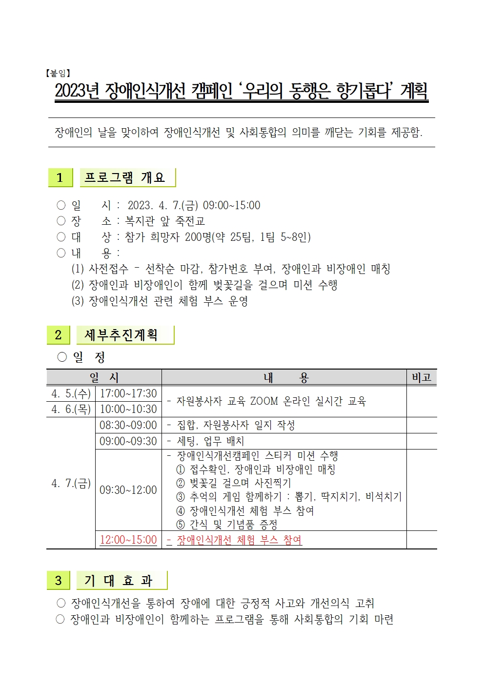 MOKWON UNIVERSITY유성구장애인종합복지관에서는 2023년 제 43회 장애인의 날을 맞이하여 장애인식개선 캠페인을 진행하기 위한 자원봉사자를 모집하고 있습니다.