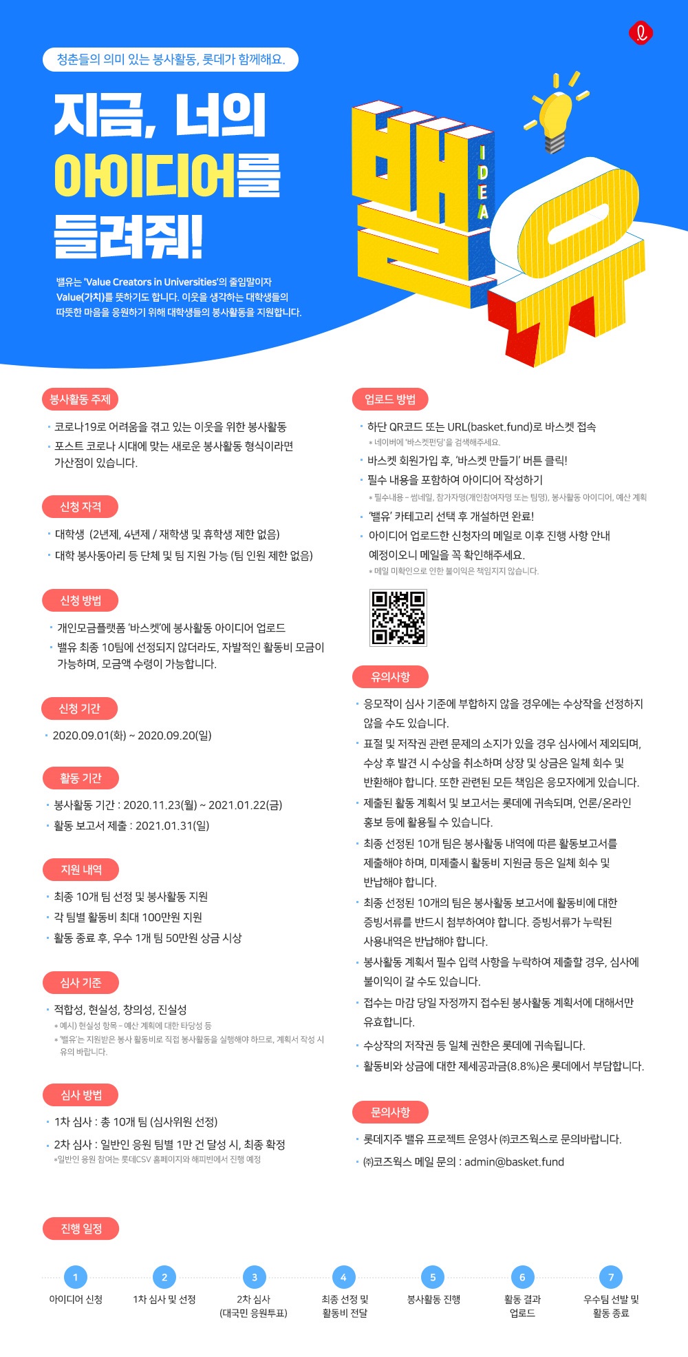 4. 문의: 롯데지주 밸유 프로젝트 운영사 코즈웍스 (이메일 문의) admin@basket.fund