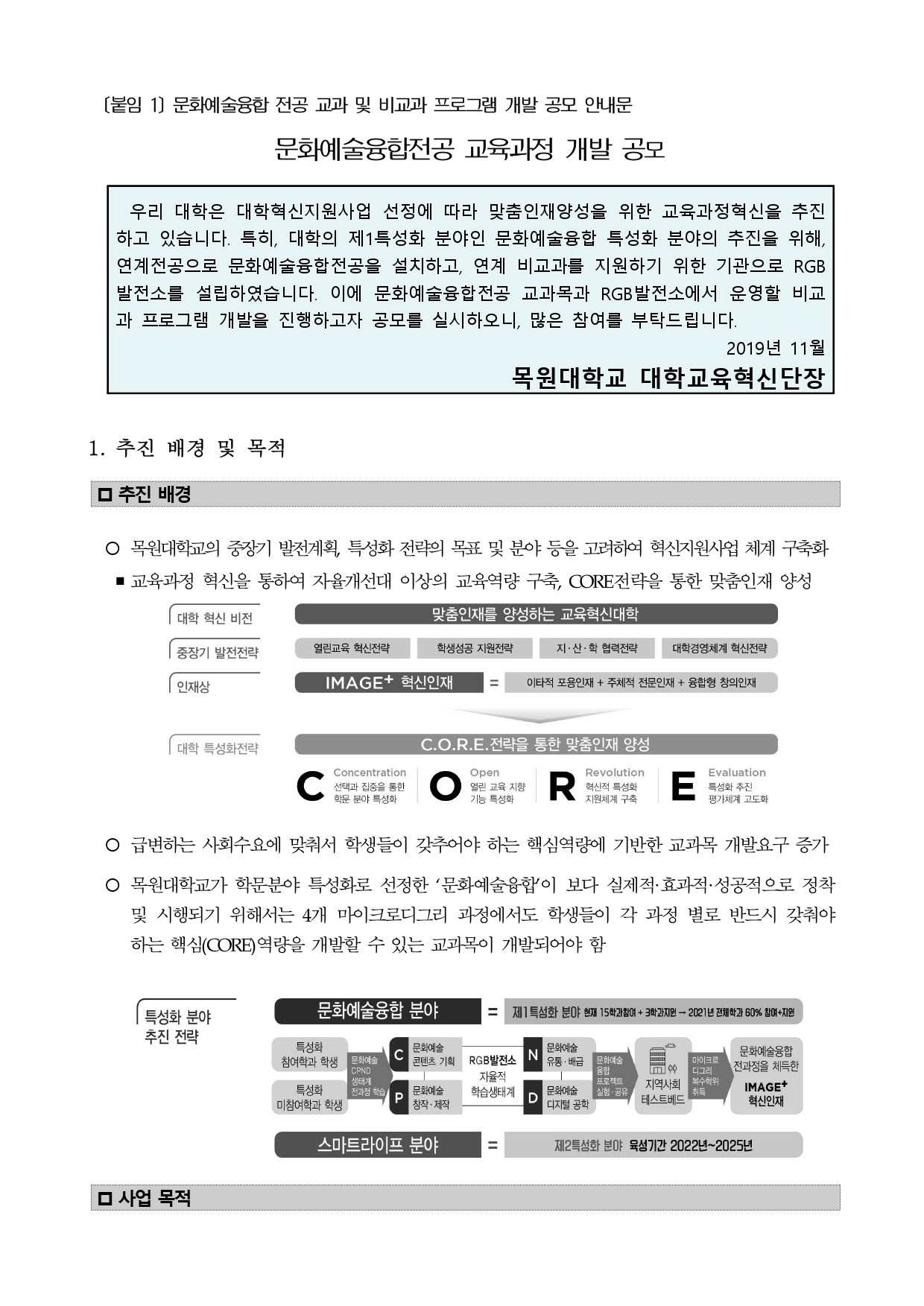 MOKWON UNIVERSITY[붙임 1] 문화예술융합 전공 교과 및 비교과 프로그램 개발 공모 안내문 문화예술융합전공 교육과정 개발 공모