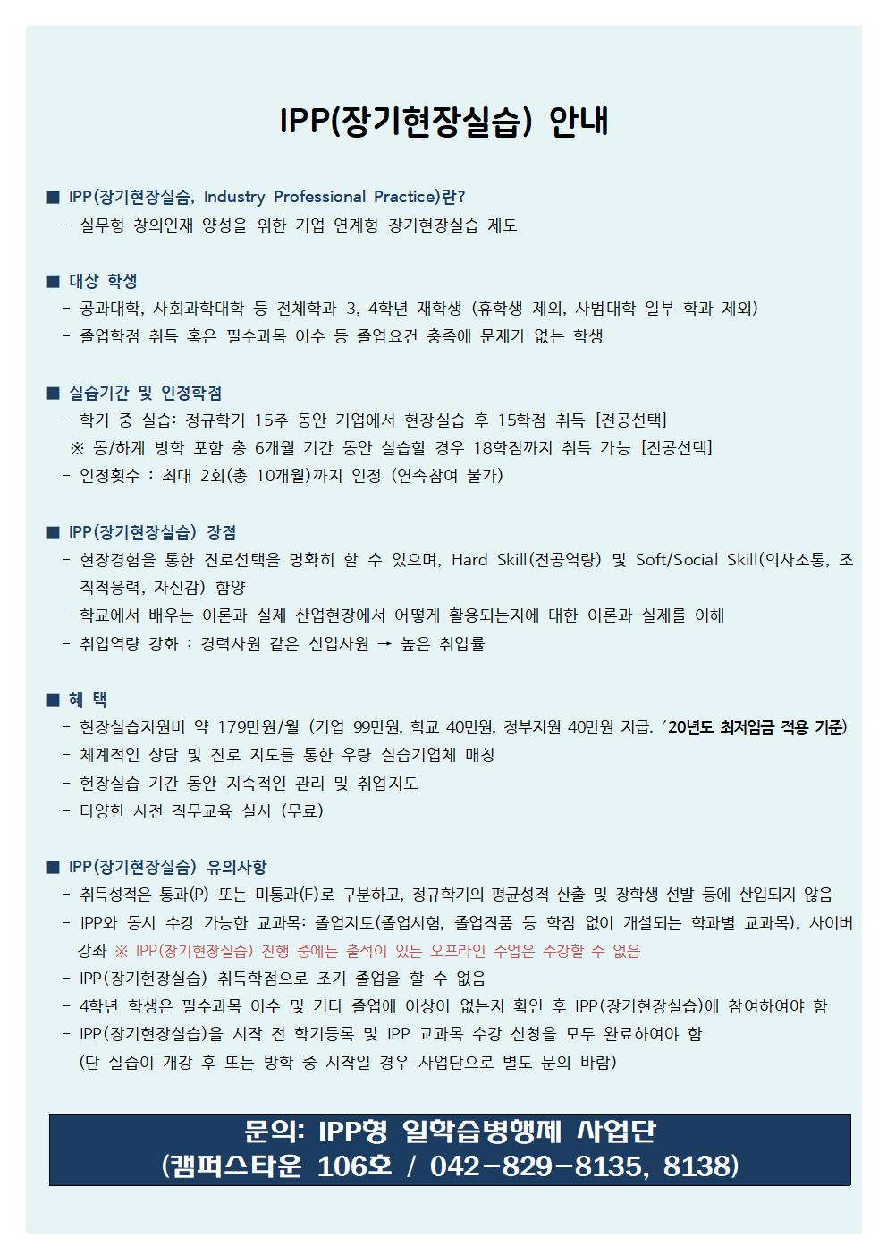 2020년도 IPP(장기현장실습) 실습생을 모집하오니 학생들의 많은 관심 및 지원 바랍니다.